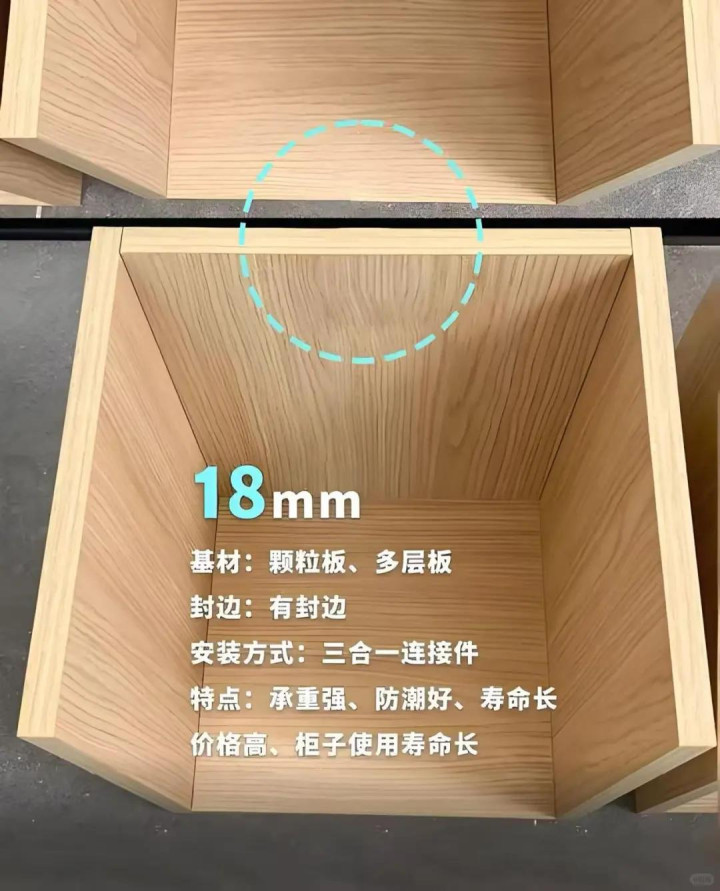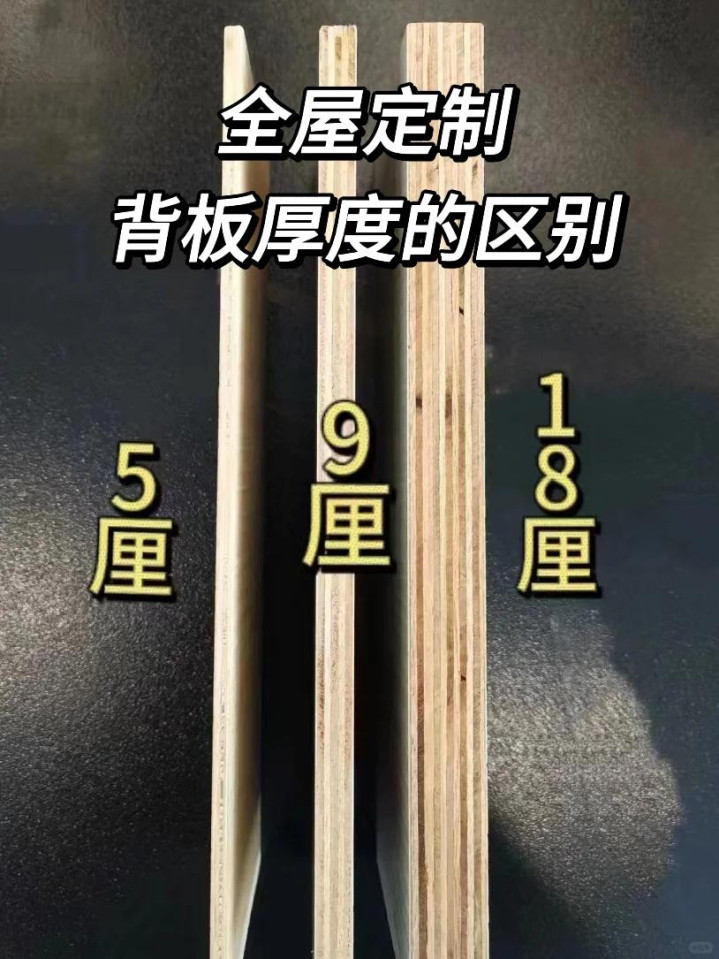 正确的做法是:所有的衣柜背面、书柜背面,至少得用9 厘板,像鞋柜、酒柜这种地方的开放格,必须用 18 厘板(18 毫米厚),不然摆点东西就变形。