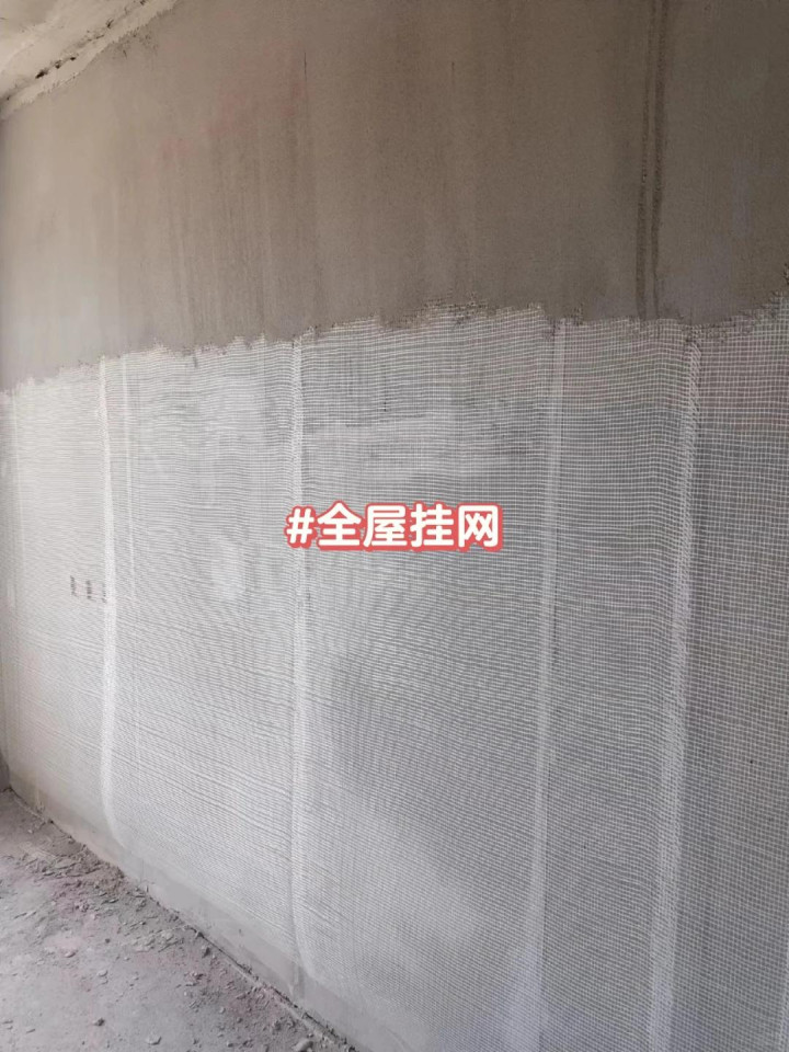 正确的做法:只需要在那些容易开裂的地方局部挂网就行,比如承重墙和非承重墙连接处,墙面开槽的位置,就算后期出现小裂纹,修补一下也很简单。